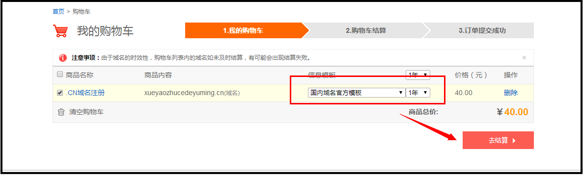 3.选择注册模版和注册年限: