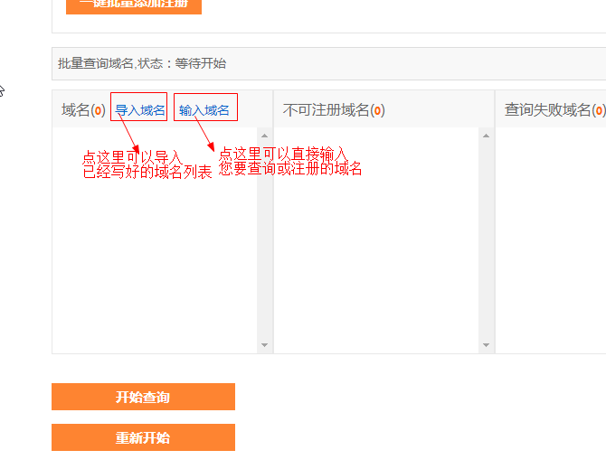 问题2:如何导入或输入域名进行查询并批量注册?