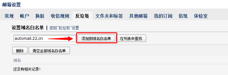 QQ邮箱收不到注册邮件和通知邮件,通常是由于反垃圾设置等级过高,选择“普通”; 或者将 automail.22.cn 加入域名白名单。步骤如下: